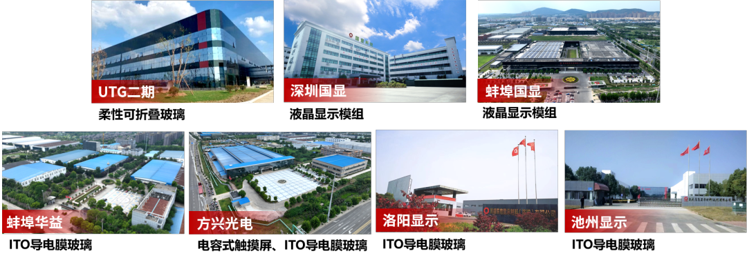 显示材料板块覆盖超薄电子玻璃、柔性可折叠玻璃(UTG)、ITO 导电膜玻璃、柔性触控、面板减薄和显示触控一体化模组等主导产品,成为具有较为完整显示产业链的科技型企业。