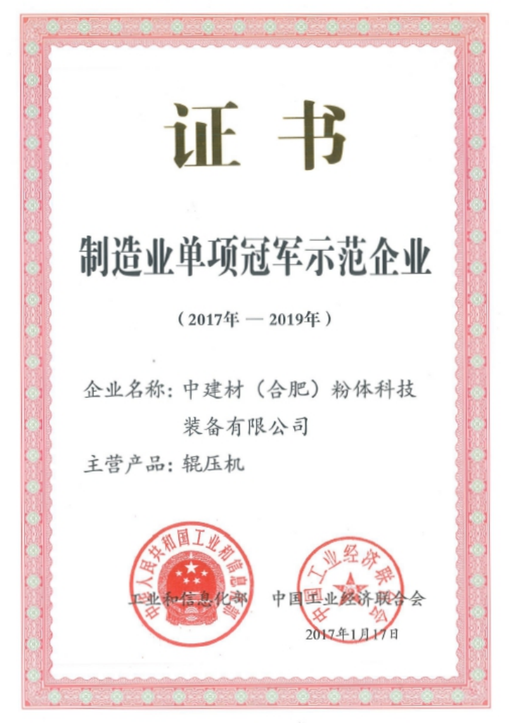 HFCG系列辊压机先后荣获国家科学技术进步二等奖、中国工业大奖提名奖、中国名牌产品,是国家工信部公布的首批制造业单项冠军产品,全球在用量超过1,800台套,是水泥行业唯一入选中央电视台纪录片《大国重器(第二季)》的主机装备;HRM系列立式磨荣获国家科学技术进步二等奖,是第七批国家工信部公布的首批制造业单项冠军产品。同时,合肥院积极拓展装备的应用边界,向其他建材、化工、冶金、电力、煤炭、非金属和新能源等行业延伸,其中,立式磨在水泥外行业收入已约占50%。