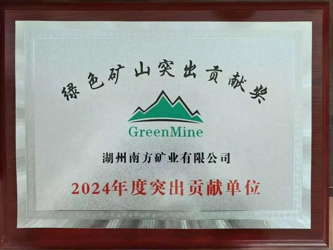 湖州南方矿业荣获“绿色矿山突出贡献奖2024年度突出贡献单位”
