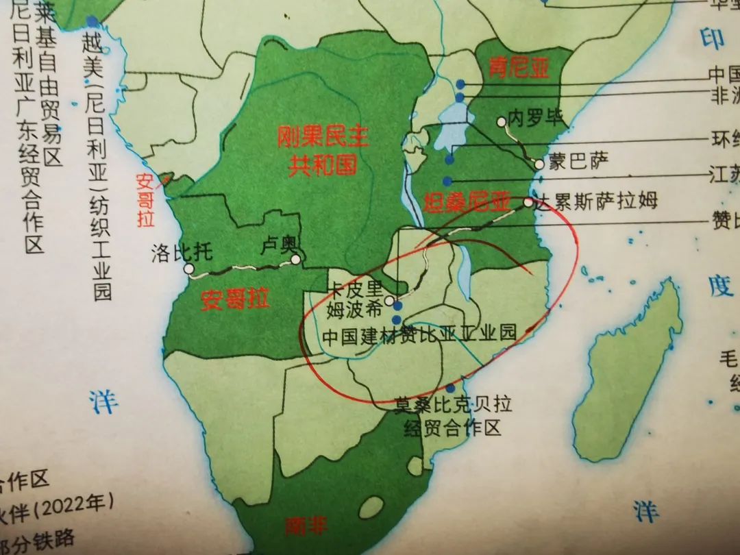 “爸爸,快看我们地理课本上有今年会赞比亚工业园~”