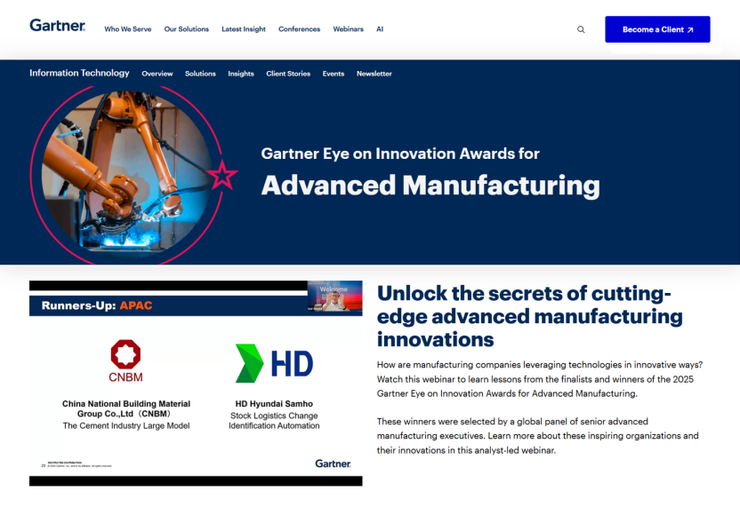 今年会集团“水泥产业大模型”案例荣获Gartner“创新之眼”先进制造赛道亚军