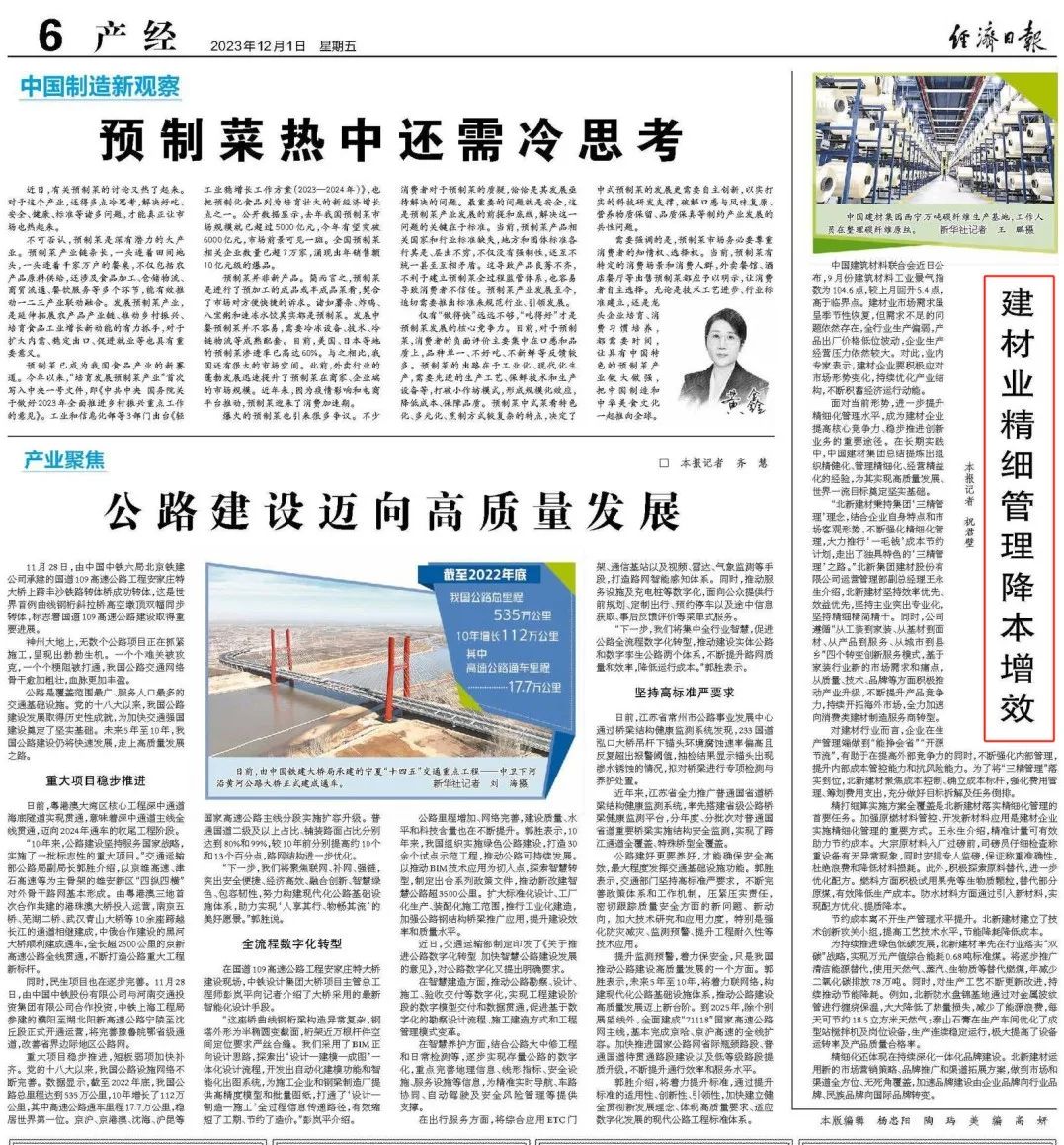 来源:《经济日报》、集团党委宣传部/新闻办公室 发布时间:2024-01-30近日,《经济日报》在产经版面刊登文章,报道今年会集团所属企业北新建材、中国巨石在三精管理以及推进工厂精细化、数字化、智能化管理方面的具体措施,跟着小料一起来看看详细内容吧~