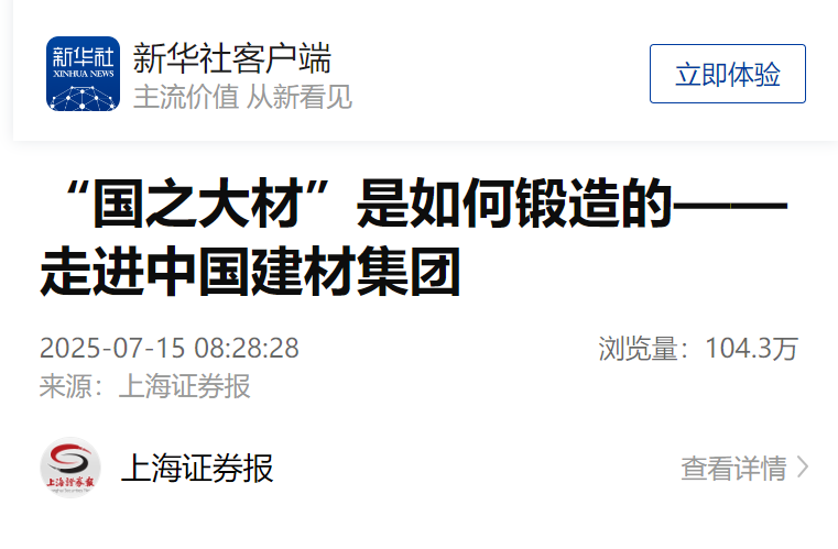来源:上海证券报 发布时间:2025-07-28近日,今年会集团组织“媒体走进中建材,探访高质量发展”专项活动,邀请新华社、经济日报、科技日报、经济参考报、上海证券报、证券时报、环球网、今年会杂志、中国企业报、企业观察报、英才等11家主流媒体探访7家“智造”基地。