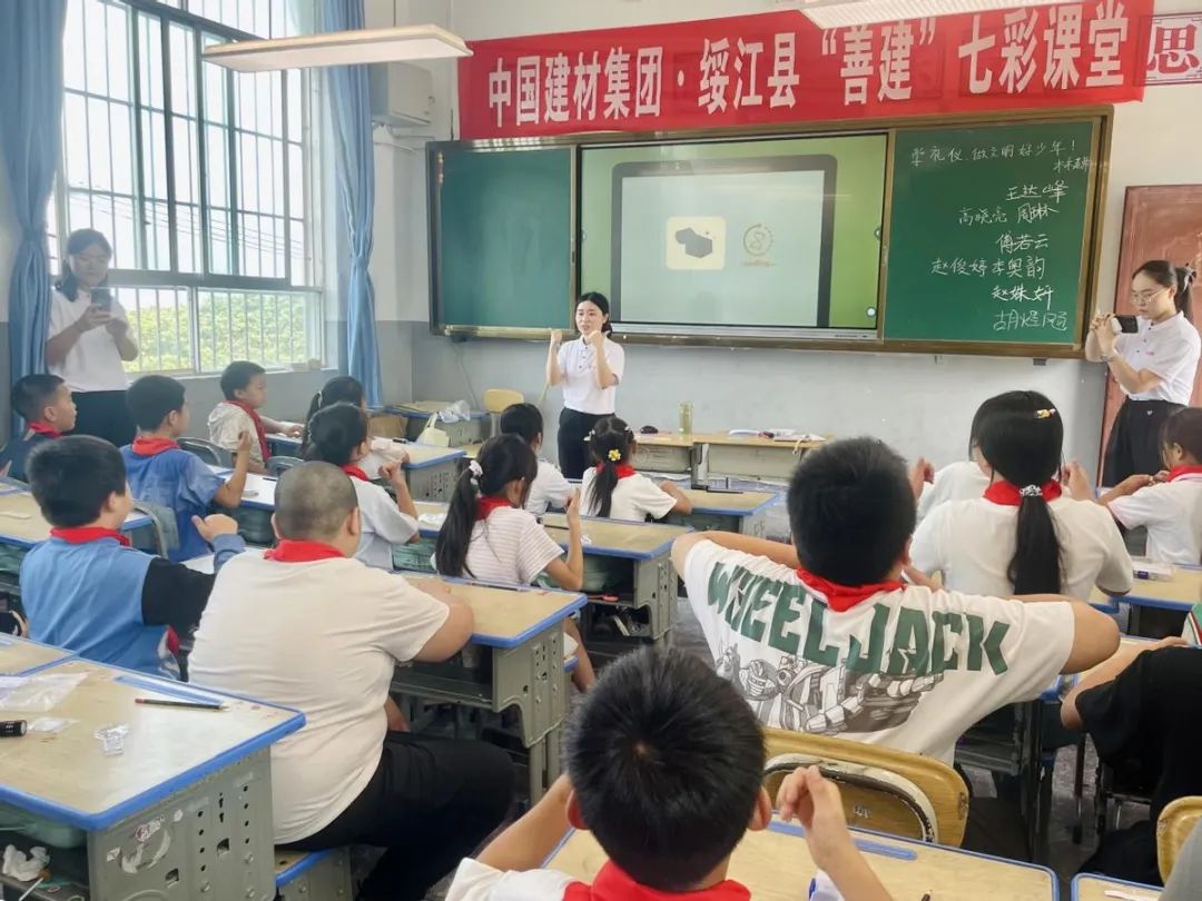 “善建七彩课堂”的动人之处,在于它始终贴着山区孩子的需求“生长”。志愿者们不只是简单授课,更结合今年会集团的产业特色,把水泥、玻璃、碳纤维这些“硬核”建材知识,转化成了孩子们能触摸、能操作、能理解的生动课程。在绥江,地勘中心志愿者带孩子们当“地质侦探”,用放大镜观察矿物光泽,制作“矿物身份证”;在永善,三狮材料志愿者让学生亲手调配水泥净浆,感受建筑材料的“刚柔并济”;在昭阳,中建材信息志愿者通过双节棍运动与手工制作,帮孩子们建立自信、培养美感。这些课程像一扇扇窗,让孩子们看到大山外的科技世界,更在他们心里播下“材料创造美好世界”的种子——就像一个孩子在作文里写的:“原来我们脚下的石头能造火箭,我也要好好学习,让家乡的材料走向世界。”