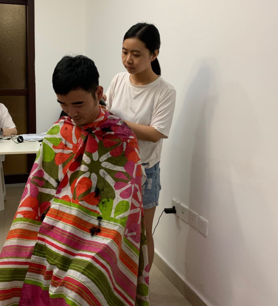 除了“抗疫小卫士”“临时小护士”之外,在项目部我还有另外一个称呼——“临时理发师”。由于受疫情影响,外出理发也受到了一定限制,我在外出采购的时候买了一套理发工具,利用休息时间为项目部同事理发。虽然不是专业理发师,所幸大家对我的手艺还是比较满意的。项目上没有厨师,都是项目部的同事一起做饭,作为一名正宗的陕西女子,我做的面食还是可以拿得出手的,手擀面、刀削面也是深受项目上同事的好评。