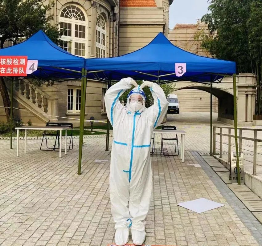 第一次难免有些紧张。在居委干部的指导下做好防护工作后,姓周名沂的“大蓝”就正式上岗了。所谓“大蓝”就是蓝色防护服反穿,相对于“大白服”的防护性要弱许多。当时身体是暴露在“污染区”中(对于医护专业人士而言,核酸检测区域为“污染区”,即已被病原微生物污染的区域),现在回想起来,隐约有些后怕。
