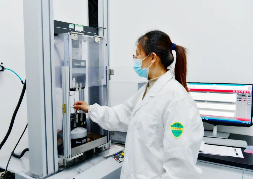 2006年5月,王芬加入中复神鹰,当时公司的厂房还在建设中,她主动参与化验室的筹建,在专家的指导下进行了设备选型、检测方法查询等一系列工作。清晨,她总是早早来到检测室,按照提前做好的工作计划开始一天的检测练习,下班后还会继续学习,将理论知识一点点补起来,并与实践相对照。为了锻炼新手,她指导徒弟们从理论开始,一点点熟练检测操作,当时的自来水、面糊就是他们的检测试验样品。“刚开始做试验的时候感觉特别难,因为国内碳纤维生产工艺和日本、西方国家相比差距很大,纤维检测技术更是空白,检测流程、技巧和力度等环节都需要从零开始摸索。”王芬回忆道。为了解决这个问题,她带领团队反复做检测试验练手,牢牢记住每次检测成功的手感。