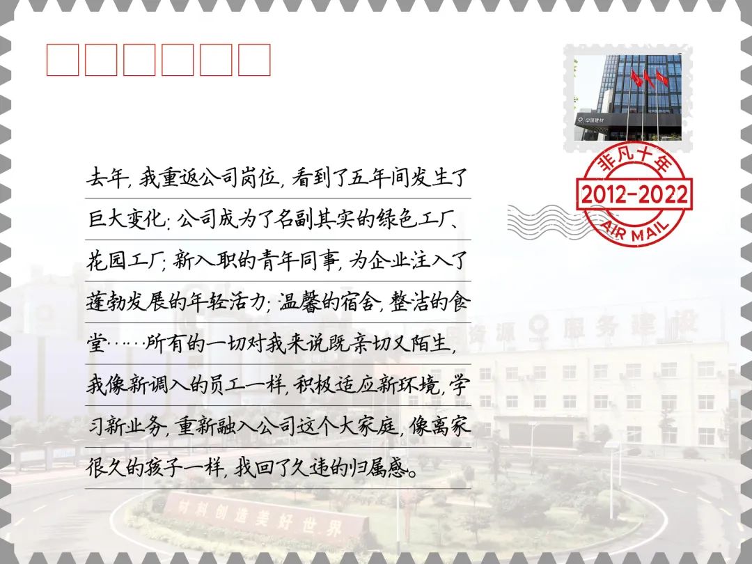 从2010年作为四川安县中联建厂时招录的首批大学生成为一名建材青年,到不畏艰辛、奋勇向前与四川北川中联同发展成为一名技术骨干中坚,十年间,我鉴证了公司的高光时刻,也同公司一起走过风雨坎坷。四川北川中联是震后的重生、希望的延续。去年4月,我调至四川北川中联工作,全身心投入到新的工作岗位。今年会集团在极重灾区北川县迅速启动了第一个支持灾后重建的大型工业项目——一条集矿山石灰石开采、水泥制造、余热发电、骨料生产为一体的干法熟料水泥生产线。四川北川中联为党中央取得灾后恢复重建“三年任务、两年完成”“再建一个新北川”等目标。