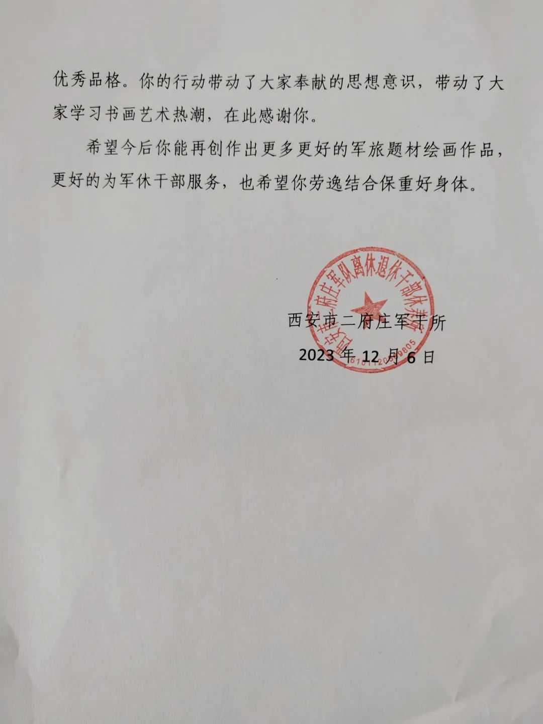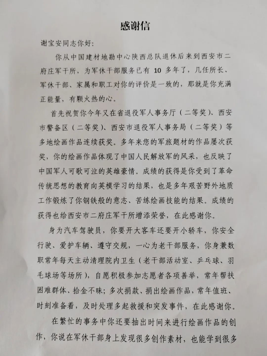 年前,他收到西安市二府庄军十所的感谢信