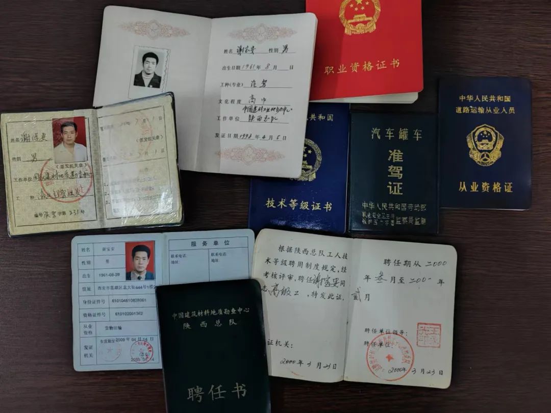 谢宝安考取了红十字救护员证、天然气罐车驾驶证、高级技术工等各类证书。30多年从事野外地质工作,哪里艰苦哪里去,秦岭深处、黄土高原、青藏高原、云贵高原、沙漠无人区等都留下了他的身影;他从事地质勘查工作时,是采样员、搬运工、爆破员、绘图员、炊事员;他从事汽车驾驶工作时,汽车边若找不到他,那一定在装卸工那。在秦岭隧道勘查运送物资,汽车半个轮胎都在万丈悬崖上行驶,他凭借着娴熟的驾驶技能和过硬的心理素质让人直呼“厉害"。他在开车同时,每年要在崇山峻岭、大漠、原始森林制作几百个GPS测量点,编写的《野外测量标志实施规范》受到陕西省第一测绘大队好评。