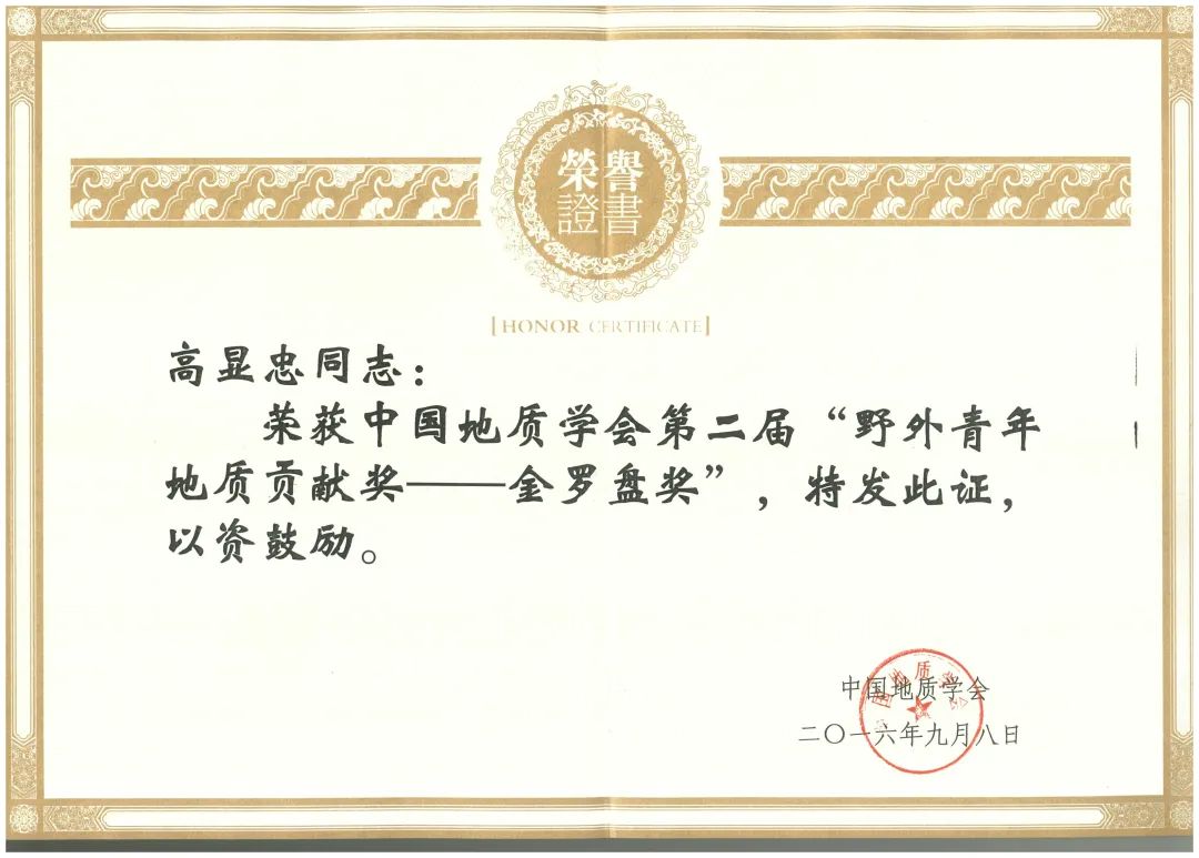 同时,他还主持参与了石墨、陶粒页岩、霞石、磷、大理岩等30多个矿种的找矿、勘查工作,累计提交的资源量超过3亿吨。他所获得的荣誉不胜枚举,其中,国家级一等奖1项,省部级一等奖3项、二等奖1项,以及2项国家专利。在2016年9月,荣获中国地质学会第二届“野外青年地质贡献奖——金罗盘奖”。