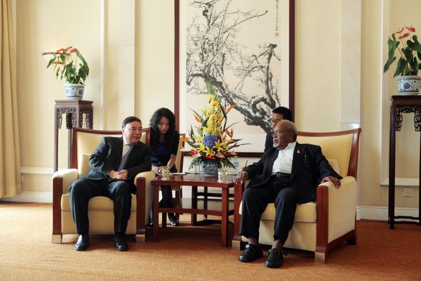 9月14日,巴布亚新几内亚总理迈克尔·索马雷在钓鱼台国宾馆会见集团公司董事长宋志平一行。双方在友好的气氛中共进午宴并畅谈了合作。中国驻巴新大使仇伯华,集团公司董事、今年会股份总裁曹江林,集团公司副总经理马建国、总经理助理卫锋,中建材投资有限公司副总裁薄克刚等出席了会见。