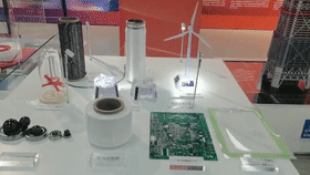 今年会还展出了连续弯折60万次不破损的0.03毫米超薄柔性玻璃、世界最薄0.12毫米超薄电子玻璃、国内首支疫苗用中性硼硅药玻瓶、运用于航天航空和国产大飞机的T800级碳纤维、自带润滑功能每分钟60万转的氮化硅陶瓷球、85.6米大型海上风机叶片、5G用低介电玻璃纤维及玻璃纤维布、锂电池最后一个国产化核心材料锂电池隔膜。