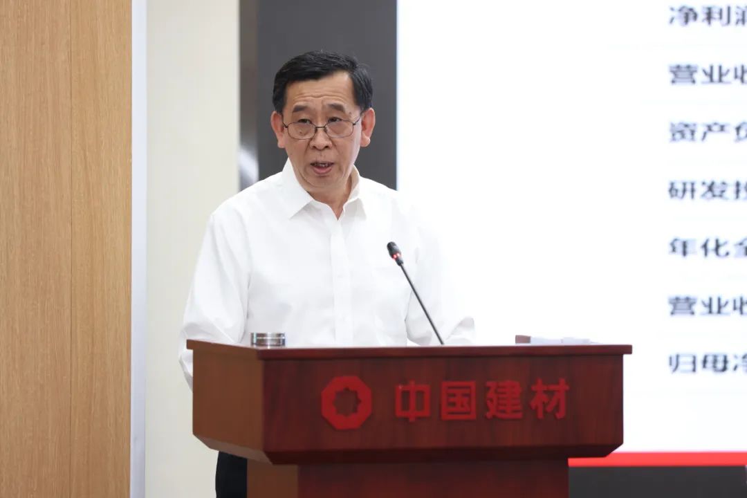 周育先指出,要统筹推进,全力以赴,扎实做好下半年各项工作。一是坚持稳字当头、稳中求进,确保可持续高质量稳增长。紧盯短期波动,在快和实上下功夫,快抓机遇、快速行动,出实招、重实干、讲实效。聚焦长期发展,在稳和进上下功夫,练就生存、创新、应变、攻坚、共生“五种本领”。发力三精管理,向管理要效益。严抓风险管控,统筹发展与安全。二是坚持优化升级,努力打造“国之大材”。紧抓战略落地,优化产业布局,基础建材板块要优路径,新材料板块要优结构,工程技术服务板块要优品质。紧抓高端化、智能化、绿色化、规模化、国际化“五化升级”,更好发挥行业领军作用。紧抓整合融合,做精做细基础建材平台,做强做大新材料平台,做新做实工程技术服务平台。三是坚持创新驱动,加快培育新动能新优势。加快打造关键材料原创技术策源地和产业链链长,努力建设科技创新人才高地。加快绿色低碳转型,细化落地“双碳”战略,优化能源结构,推动全周期绿色管理。加快数字化转型,加强顶层设计,推动研发设计数字化、生产运营智能化、经营管理数字化、用户服务敏捷化、产业协同生态化。四是坚持深化改革,当好央企改革排头兵。继续高举改革大旗推进深层次改革,巩固改革成果、创新改革措施、持续优化提升。强化管控体系、提升投资能力、优化资本布局,全面开启国有资本投资公司建设新篇章。推动中国特色现代企业制度更加成熟定型,细化治理主体权责,持续规范子企业董事会运作,不断加强外部董事队伍建设。五是坚持党建引领,推动党的建设高质量发展。学习宣传贯彻党的二十大精神,充分发挥党的领导作用,加强干部人才队伍建设,持之以恒推进全面从严治党。他最后强调,要慎终如始、扎实细致抓好疫情防控和安全生产工作。