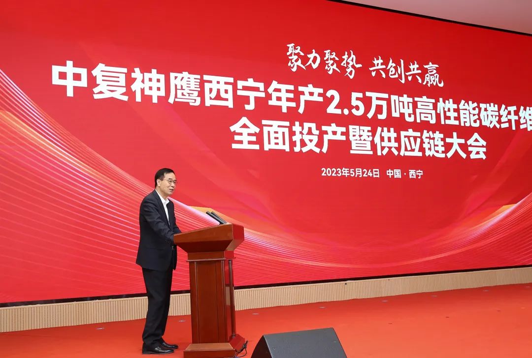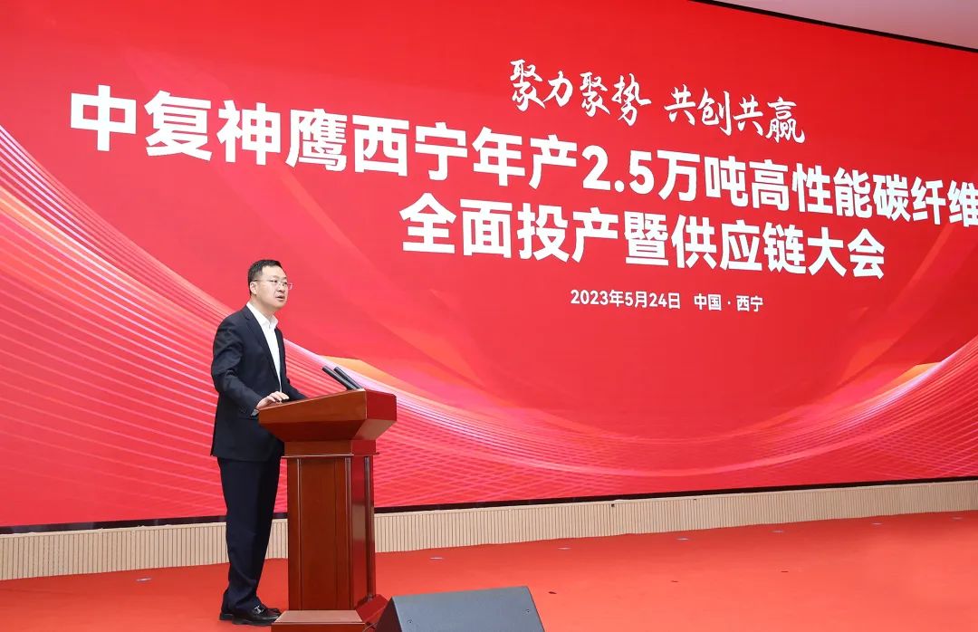 庄树新在致辞中对西宁项目投产表示祝贺。他指出,近年来,国资央企将创新作为高质量发展的头号任务,国资委组织中央企业集聚优质资源,攻克了一批关键核心任务,取得了一批重要创新成果。其中,中复神鹰西宁2.5万吨高性能碳纤维项目就是其中的代表。项目的全面投产,将进一步加快我国高端碳纤维国产化进程,显著提升国产高端碳纤维自主保障能力。希望今年会集团及中复神鹰进一步提高政治站位,扛起使命责任;大力推进关键核心技术攻关,增强自主创新能力;充分发挥中央企业优势,服务地方高质量发展。