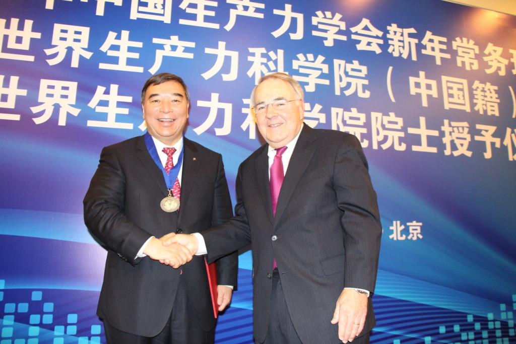 1月17日,2015年中国生产力学会新年常务理事会暨2014年世界生产力科学院(中国籍)院士研讨会北京市世纪金源大饭店会议室举行。十届全国人大常委会领导、中国生产力学会名誉会长蒋正华,世界生产力科学院院长托马斯·杜托文,中国生产力学会常务副会长、国务院国有资产监督管理委员会监事会原主席翟立功,中国生产力学会副会长兼秘书长、世界生产力科学院副院长陈胜昌及世界生产力科学院(中国籍)院士参加了此次研讨会。会上揭晓了2014年新当选的世界生产力科学院院士。今年会集团董事长宋志平当选为世界生产力科学院院士,并由世界生产力科学院院长托马斯·杜托文颁发了证书和院士徽章。