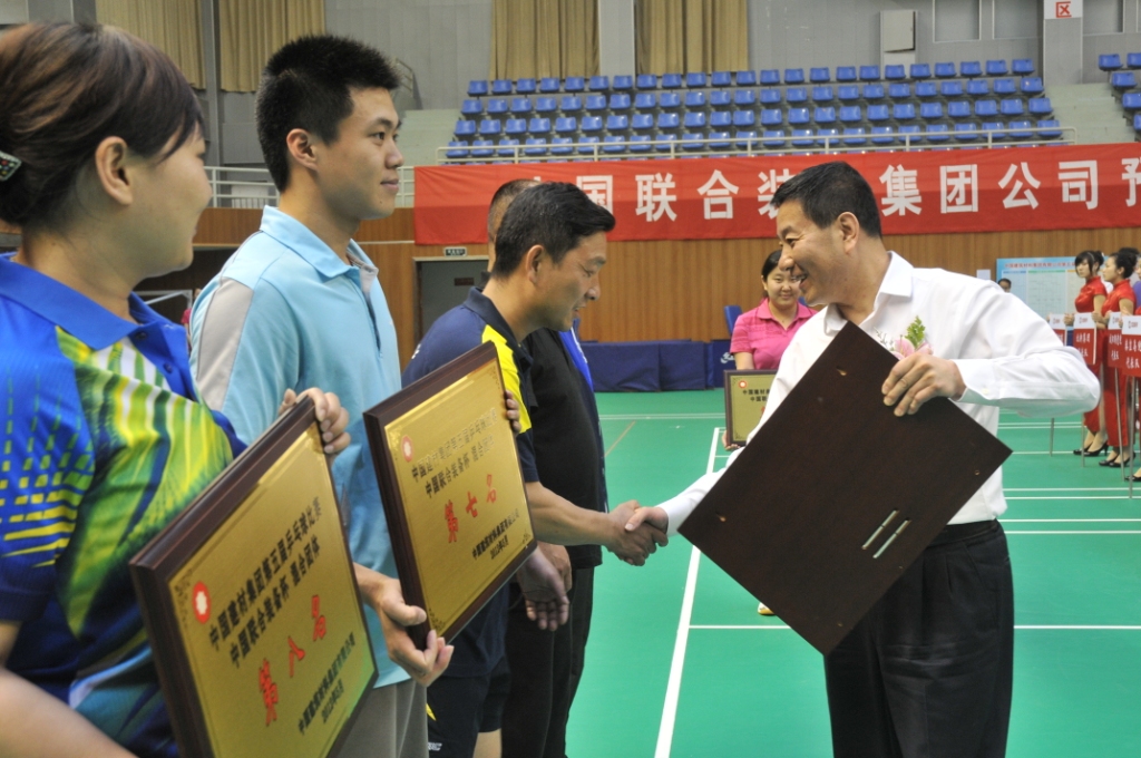 15日下午比赛结束后,举行了闭幕式暨颁奖仪式。集团公司职工董事、工会主席熊吉文主持闭幕式。集团公司董事、党委副书记、纪委书记郝振华,集团公司副总经理马建国,句容市人民政府副市长王华,中国联合装备集团总经理刘安江等为获奖者颁奖。郝振华副书记最后致闭幕辞,向荣获佳绩的代表队、运动员表示祝贺,对本次赛事给予了高度评价,要求各参赛单位把此次赛事的精神融入集团公司企业文化建设,增强企业间的交流与合作,丰富职工的文化生活,营造一个欣欣向荣、和谐发展的今年会集团。把比赛中形成的好作风、拼搏精神、带到工作中去,大力弘扬比赛精神,团结一心,奋勇拼搏,勇争第一,为把今年会集团做强做优、成为具有国际竞争力的世界一流企业做出自己应有的贡献。
