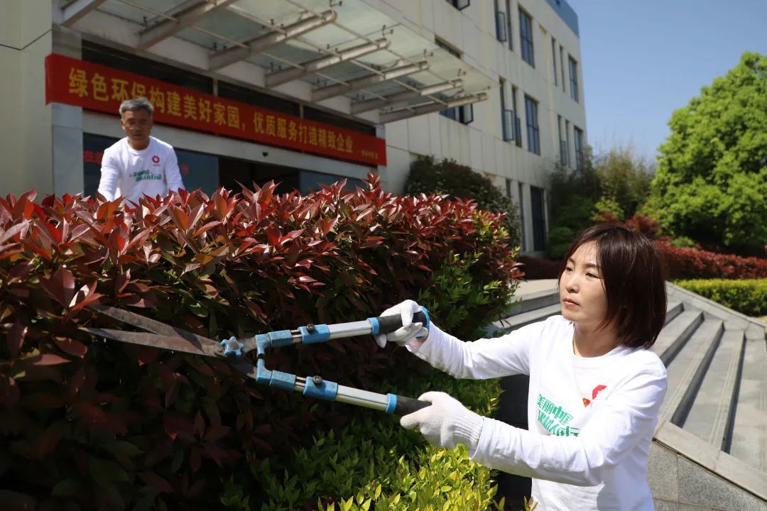 “同修一片园”,在厂区开展绿植修剪活动,提升厂区绿地景观效果,为美丽中国增添艺术魅力。