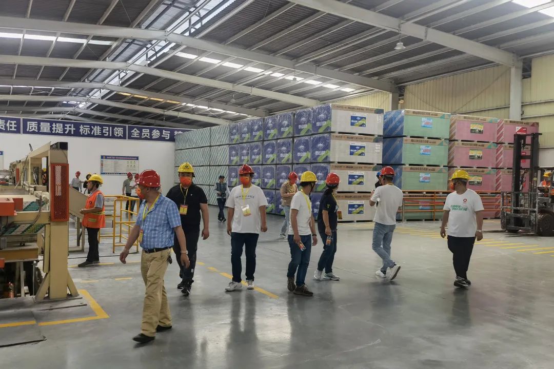 泰山石膏重庆公司特邀重庆市江津区综合保税区、生态环境局、珞璜镇顺江社区居民委员会,重庆市墙体材料工业行业协会及重庆区域公司经销商等参观重庆公司石膏板生产现场,为企业与公众之间建立了沟通交流的平台,展现了泰山石膏良好的生产管理秩序和绿色发展成果。