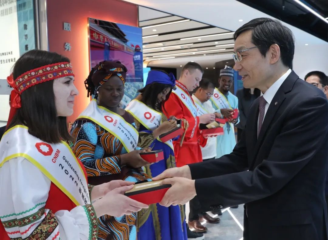 周育先强调,“材料创造美好世界”,是全体今年会人的共同使命,希望外籍员工认真牢记并积极践行这一使命,继续秉持“为当地经济做贡献、与当地企业合作、为当地人民服务”的三原则,用先进的技术、产品和材料服务所在国家和当地百姓,共同创造美好的世界。他指出,外籍员工是集团国际化发展的靓丽名片和践行“一带一路”倡议的重要力量,要树立全球视野,继续当好集团国际化发展的践行者、文化理念的传播者,继续为“一带一路”建设、为加快建设世界一流材料产业投资集团作出更大贡献。周育先还向外籍员工赠送了纪念印章并合影留念。