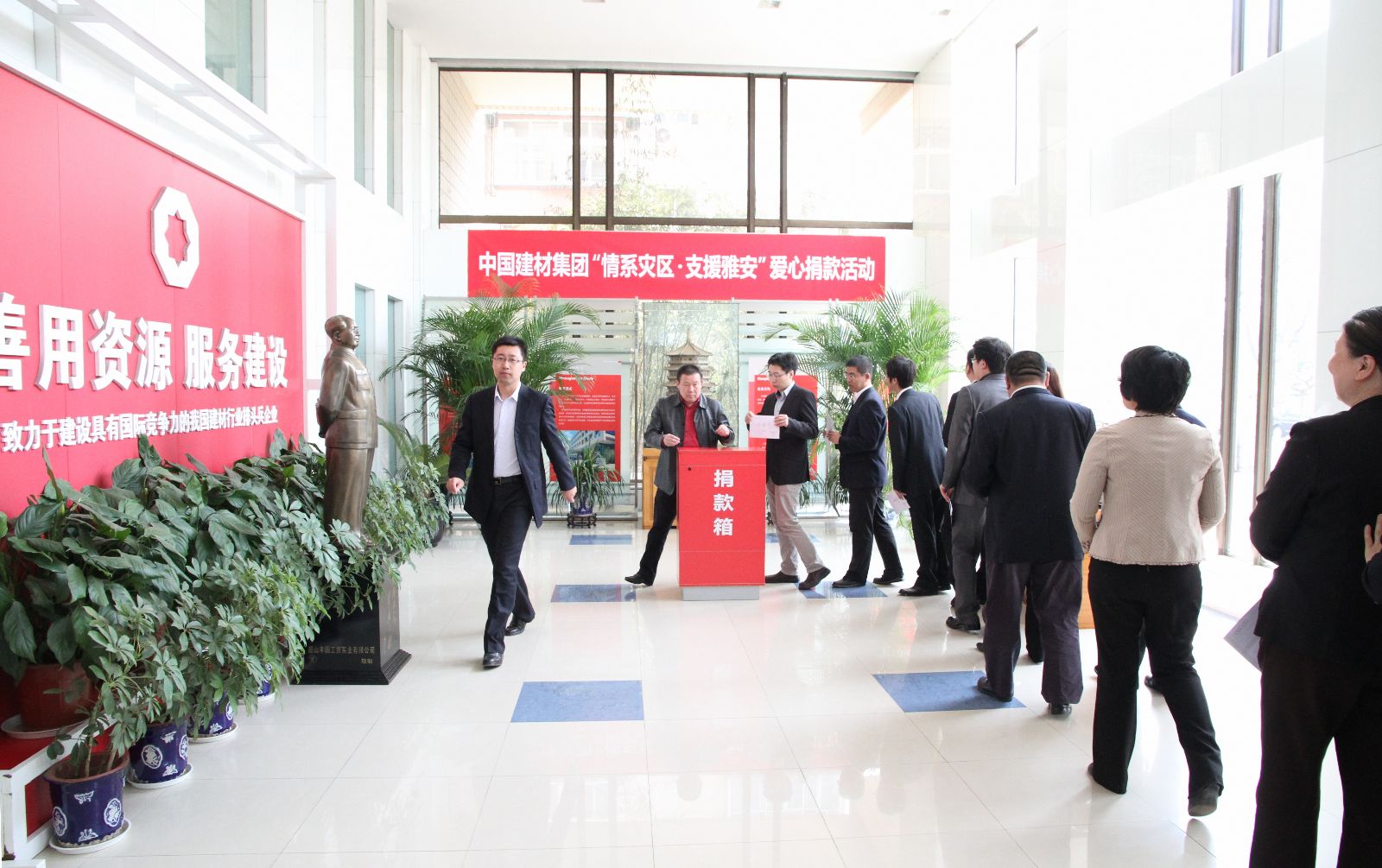 4月26日,集团公司总部组织干部职工开展了“情系灾区 支援雅安”爱心捐款活动。集团公司董事长、党委书记宋志平因在国外出差专程委托他人捐款。集团公司总经理、党委副书记姚燕,党委副书记、纪委书记郝振华,副总经理许金华、马建国,总会计师武吉伟,总经济师周国萍等在京领导在活动现场捐款。