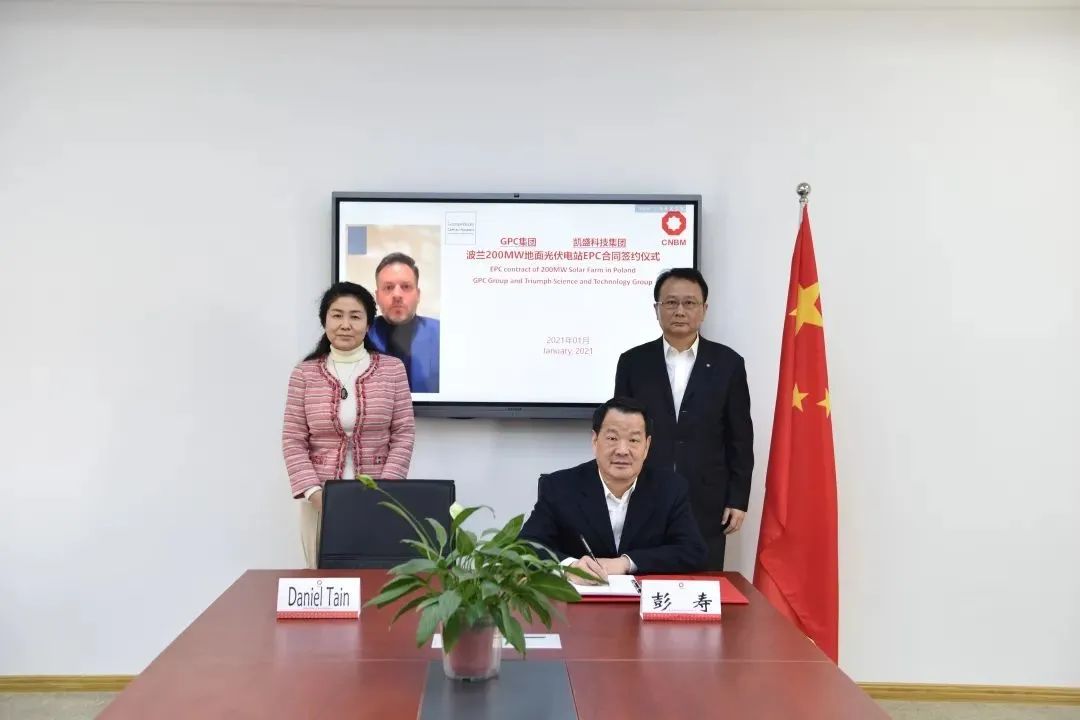 1月29日,凯盛科技与金顶资本控股集团通过视频连线,签署了总金额超亿欧元的波兰地面光伏电站二期200兆瓦总承包合同。这是继2020年2月双方开展新能源国际合作后的再度联手,进一步表明凯盛科技新能源业务综合实力达到国际一流水平。