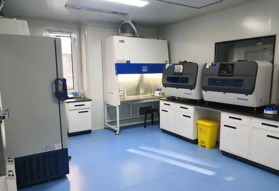 实验室配备全自动核酸提取仪、实时荧光定量PCR、高压灭菌锅、生物安全柜等设备设施,主要开展新型冠状病毒肺炎(CoronaVirus Disease 2019,COVID-19)核酸检测,具备日单管6000人份次的检测能力;拥有专业检测队伍,为实验室开展高质量检测提供了人才和技术支持。