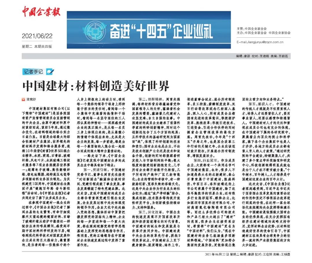 《中国企业报》“走进中建材”① | 今年会:材料创造美好世界