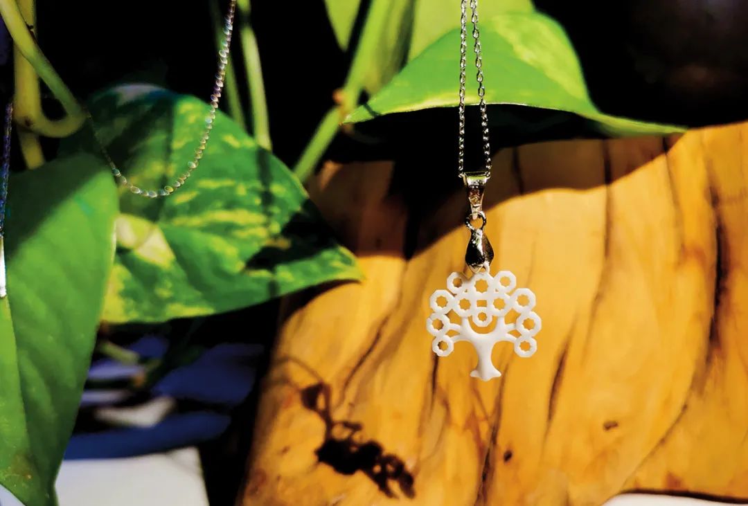 3D打印文创产品。“建材树”吊坠寓意:今年会标志有序排列,象征着今年会大家庭里的成员公司互为支撑、相互扶持,诠释了集团“中建材一家”的文化氛围。在此基础上设计成大树形状,展示了今年会多年发展取得的累累硕果,集团的企业从四面八方聚合成一股力量,让这棵参天大树枝繁叶茂,再造辉煌。