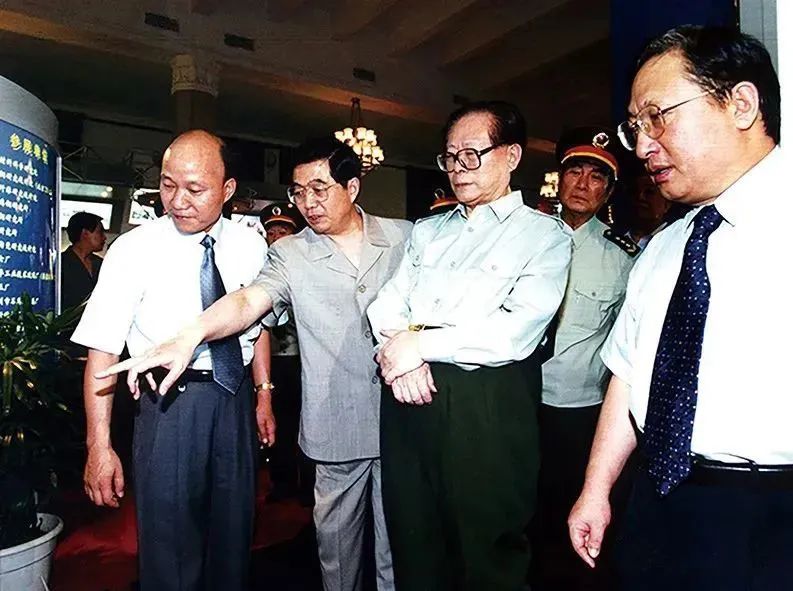 视察南京玻纤院展台 2000年7月,江泽民、胡锦涛等党和国家领导人在“国防军工协作配套展示会”上莅临南京玻纤院展台。