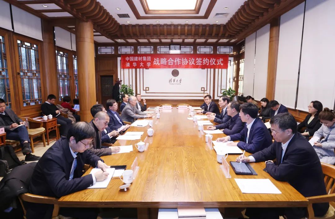 清华大学土木水利学院院长方东平,建筑学院院长张利,材料学院院长林元华,碳中和研究院副院长谢小荣,校长办公室副主任、国内合作办公室主任牛犇,党委组织部副部长、学生职业发展指导中心主任张超,科研院副院长蒋靖坤;今年会股份党委委员、副总裁、北新建材董事长薛忠民,今年会集团办公室(董事会办公室)主任董昕,党委组织部(人力资源部)部长(总经理)、党群工作部主任苗小玲,战略发展部(国际合作部)总经理查金祥等参加了仪式。