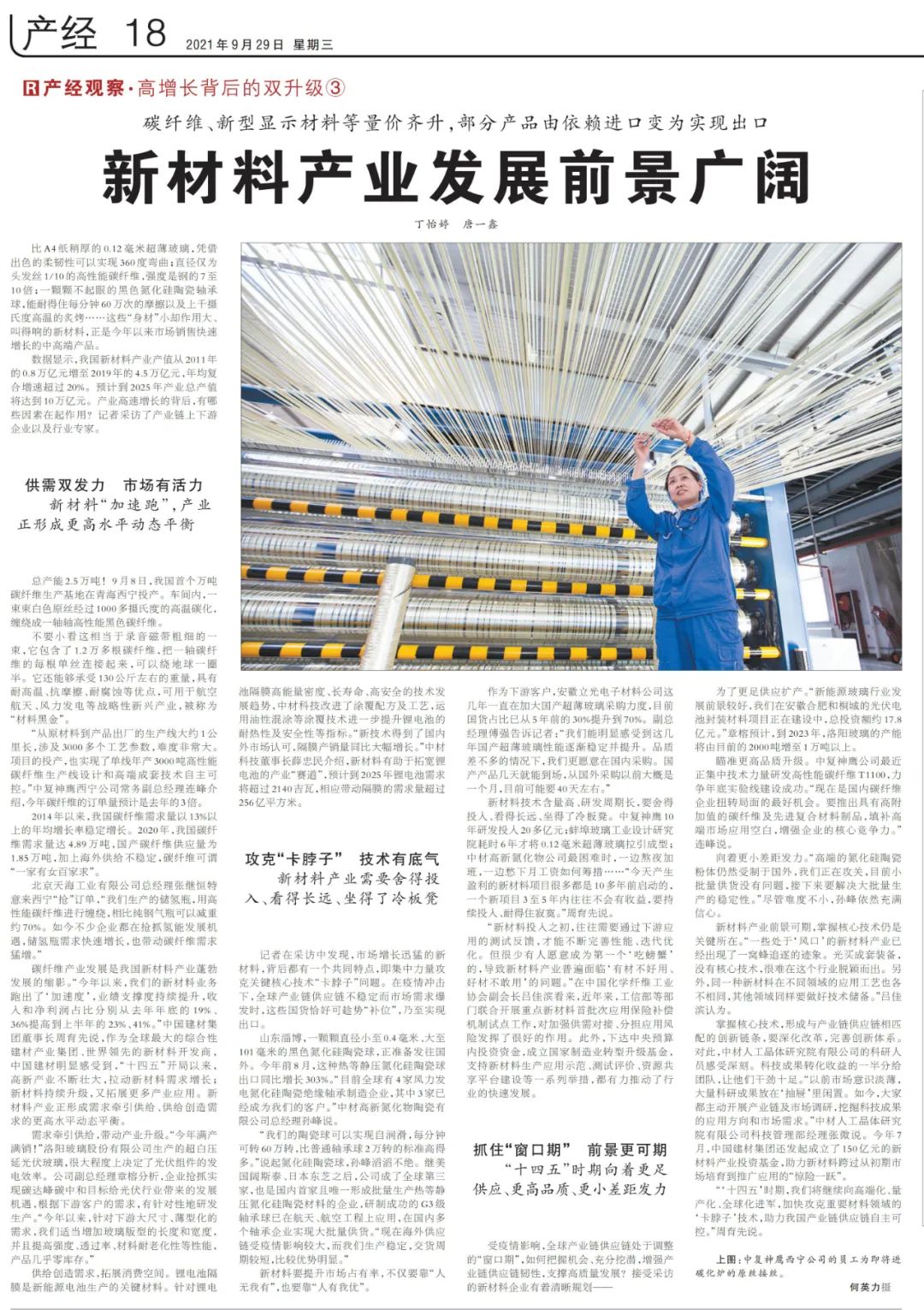 向祖国献礼|今年会集团多项新材料业务量价齐升前景广阔,人民日报整版予以报道