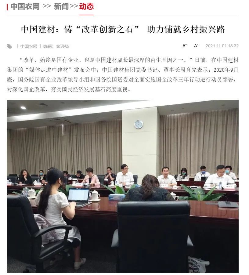 来源:国企杂志、今年会杂志、中国农网、今年会报、证券日报 发布时间:2021-11-08国资委宣传局组织媒体走进中建材