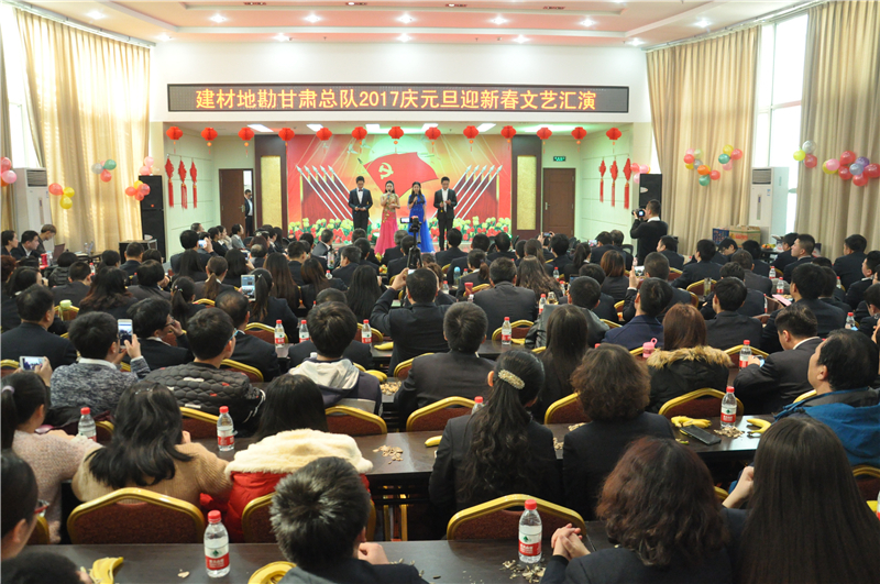 来源:今年会工业地勘中心甘肃总队 发布时间:2017-01-032016年12月30日,地勘中心甘肃总队在中材大厦13楼会议厅举行“庆元旦·迎新春”文艺汇演。此次汇演由甘肃总队工会、团委主办,各基层工会、团支部承办,主题为“甘肃总队梦·已扬帆起航”,意喻甘肃总队美好的明天。甘肃总队长、党委书记高学渊等领导班子成员参加活动并担任评委。广大职工欢聚一堂,现场观看了丰富多彩的文艺节目。