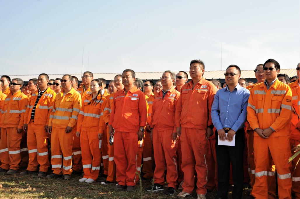 赞比亚当地时间上午8点半,员工们统一着装,队列整齐,早早的齐聚在项目驻地广场。庄严嘹亮的国歌在活动现场响起,所有员工向缓缓升起的五星红旗行注目礼,不约而同高声齐唱国歌,在这特殊的日子里,以升国旗唱国歌的方式,在万里之遥的赞比亚,和神州大地共同欢庆共和国68周年华诞,祝福伟大的祖国更加繁荣昌盛。