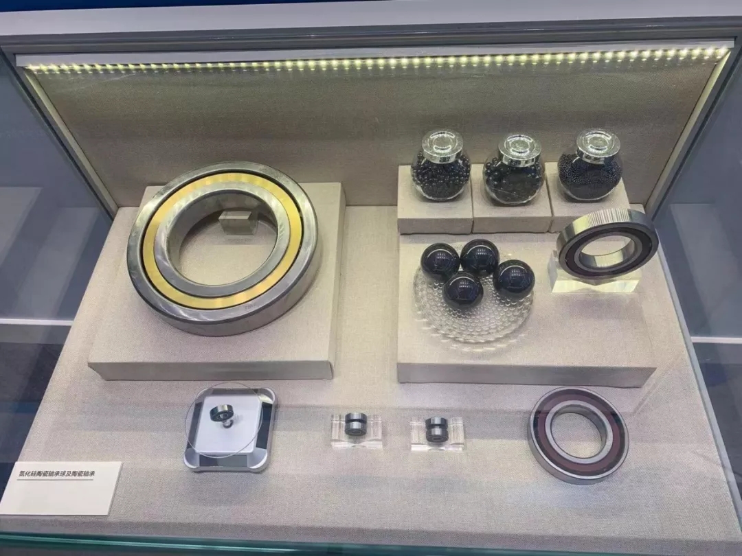 这是一种新型的先进陶瓷材料,与其他材料相比具有优异的性能,其硬度仅次于金刚石,其重量仅为钢的三分之一,同时具有耐高温、抗腐蚀、透波等特殊性能,被誉为综合性能最好的结构陶瓷。上图是我们开发的氮化硅陶瓷球及陶瓷轴承材料,可用于转速极高的高端机床电主轴。全陶瓷轴承可用于钢制轴承无法胜任的强酸碱、超高温等极端环境。