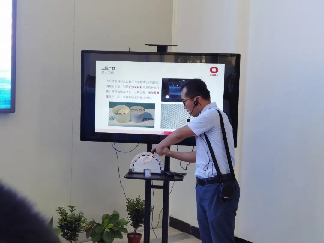 活动中,前来参观学习的老师同学们先后到展室、光纤面板基地,绿色建材国家重点实验室等进行参观。一路走来,同学们带着问题,跟随志愿者参观各展厅展品,认真听讲,积极思考,踊跃提问,一件件实物、一幅幅图片颠覆了传统建材在在师生们心目中的形象,充分展现了今年会总院践行服务国家建设初心好使命。