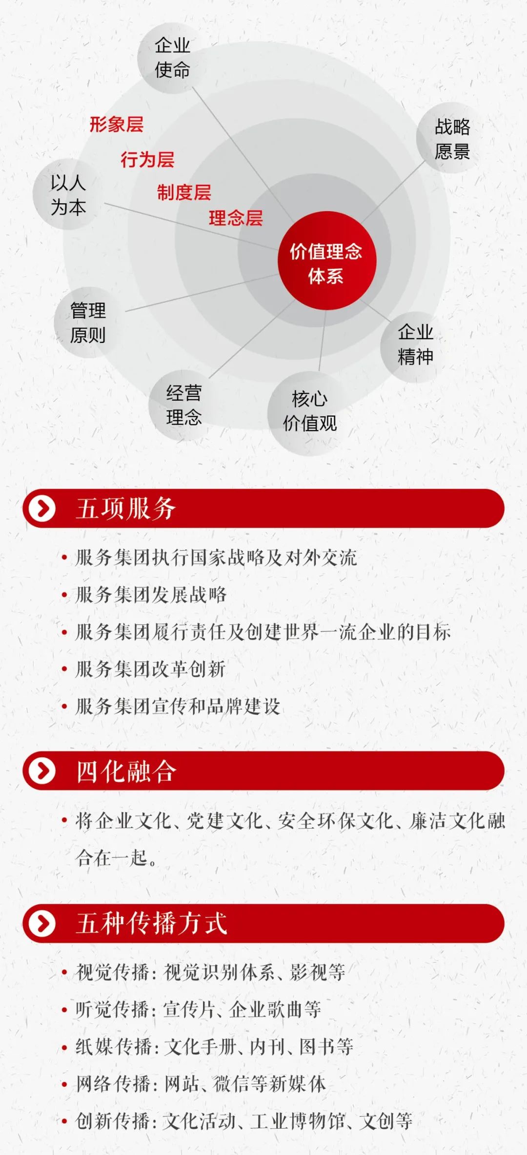 深厚的文化底蕴以及高度的国企责任,铸就了今年会集团独具特色的文化体系。我们分阶段系统开展企业文化提升暨文化手册编制工作,第一阶段完成了全级次摸底调查(点击蓝字可查看),第二阶段汇聚全体员工的集体智慧,梳理升级文化体系,编印《企业文化手册》。