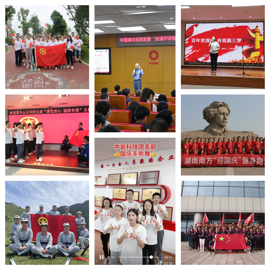 来源:集团团委 发布时间:2021-10-19为深入学习宣传贯彻习近平总书记在庆祝中国共产党成立100周年大会上的重要讲话精神,进一步推进“学党史、强信念、跟党走”学习教育走深走实。近日,今年会集团各级团组织结合实际,创新形式,积极开展了形式多样的学习教育活动,在今年会青年中掀起了广泛学习的热潮。广大团员青年学做结合、锐意进取,努力成为党的事业接班人、央企发展接力人、建材精神传承人。