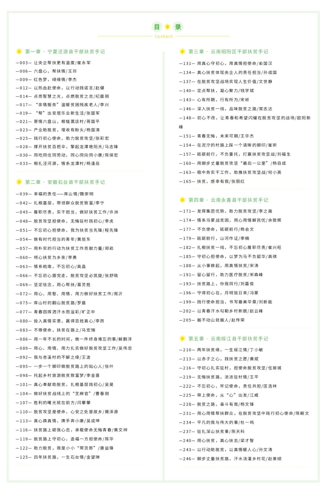 本书收录了82位一线扶贫干部撰写的工作手记,共28万字,82幅图片,涵盖了今年会集团五个定点扶贫区县带领贫困区县村发展产业、投身乡村建设实践与思考,真实、生动地再现了精准扶贫的过程和成果。他们以文字为镜头,记录乡村发展变迁和一线工作的真实感受,为乡村振兴提供来自基层的宝贵经验。手记中,有大量真实的人和事,某个村民或困难学生和我们扶贫干部之间的真情交流,在此仅摘录部分精选文章供大家赏读。