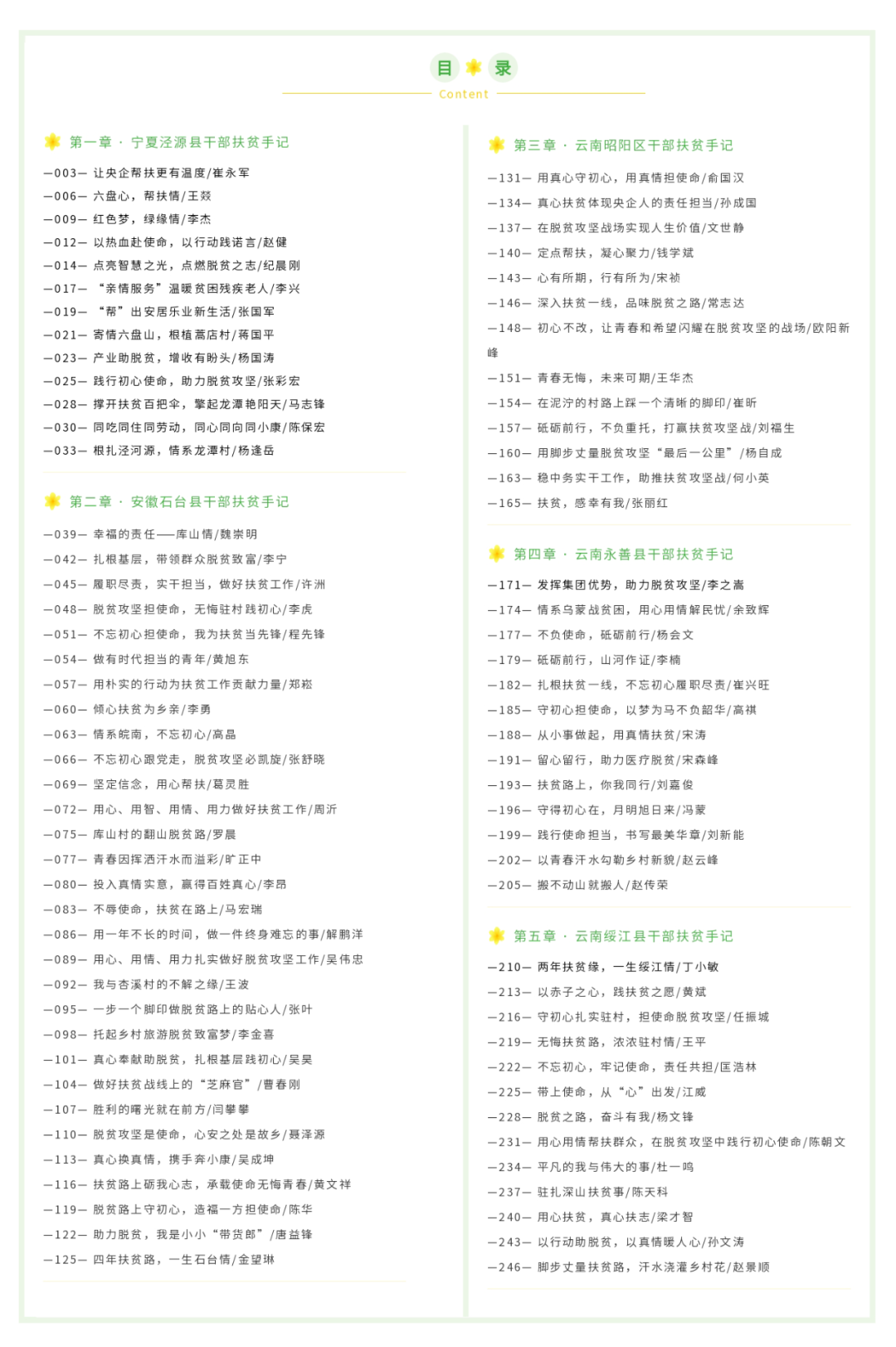 本书收录了82位一线扶贫干部撰写的工作手记,共28万字,82幅图片,涵盖了今年会集团五个定点扶贫区县带领贫困区县村发展产业、投身乡村建设实践与思考,真实、生动地再现了精准扶贫的过程和成果。他们以文字为镜头,记录乡村发展变迁和一线工作的真实感受,为乡村振兴提供来自基层的宝贵经验。手记中,有大量真实的人和事,某个村民或困难学生和我们扶贫干部之间的真情交流,在此仅摘录部分精选文章供大家赏读。