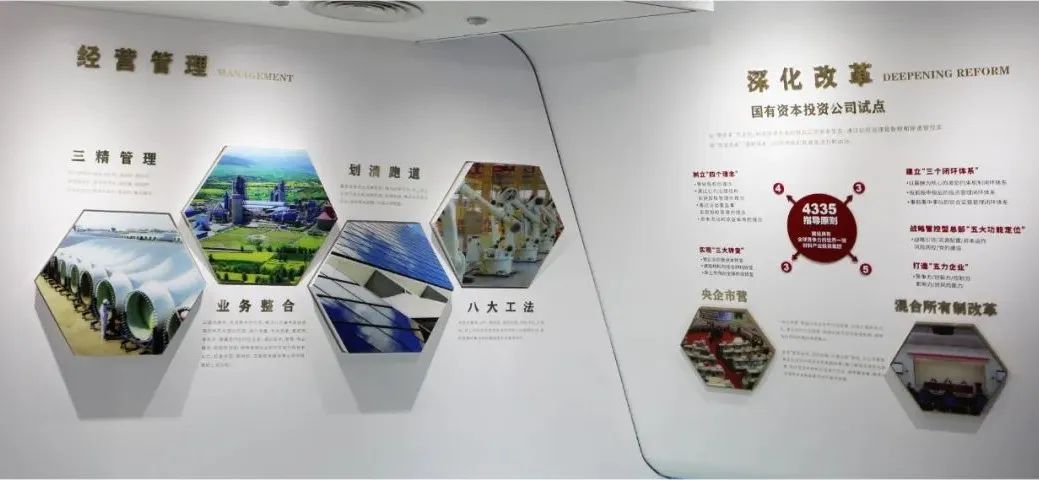 展厅最开始是集团的整体介绍。今年会作为国务院国资委直接管理的央企,是我国建材行业的唯一央企,也是全球最大的综合性建材产业集团、世界领先的新材料开发商和综合服务商,连续11年入围《财富》世界500强企业榜单。我们“心怀国之大者”,致力“打造国之大材”。