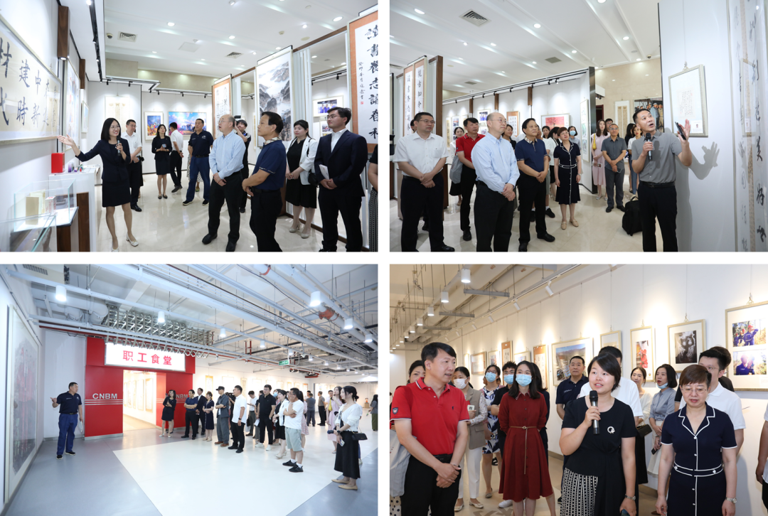 本次主题展览网上直报平台共收到380件作品,经过专家评审筛选,最终评选出46件书法、38件绘画、51张摄影、5件篆刻,共140件作品展出。创作者代表、职工代表、国海办公区讲解员等参加了揭牌仪式。