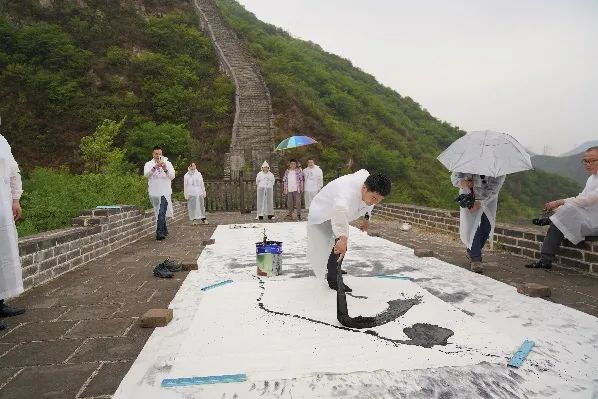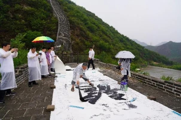 6月19日,龙生甘霖,细雨霏霏,八达岭长城如一条巨龙横亘苍山翠绿间。北新建材“翰墨飘香迎端午”的品牌文化活动在这里拉开帷幕。数十位书法爱好者和书法家一起,共同在百米长卷上书写“龙”字,欢庆端午,传播中国文化和中国品牌。