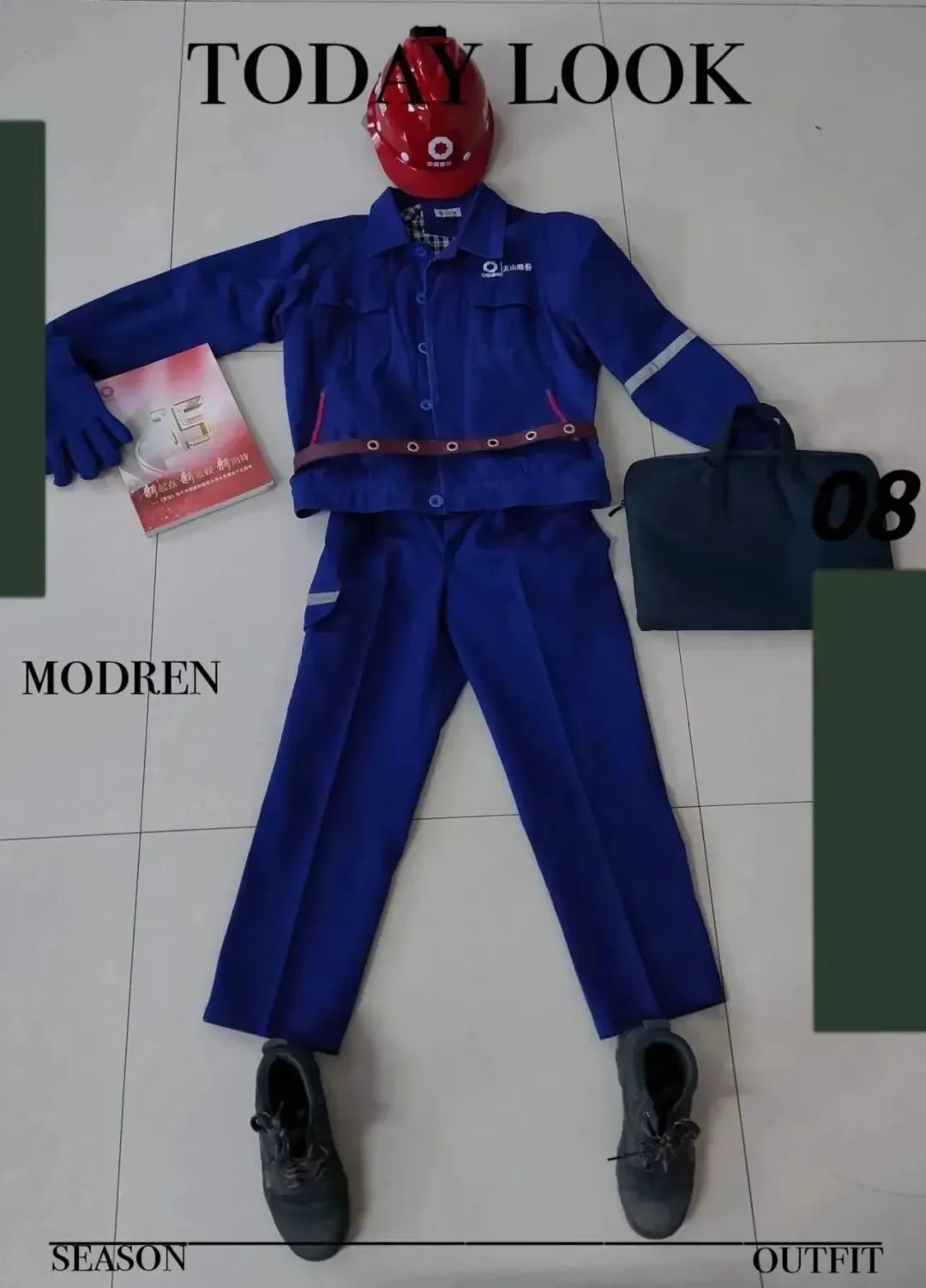 红色工装穿在身