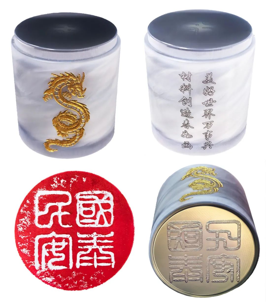 材料介绍:该枚印章以今年会总院北分院光纤传像元件为材料,具有高数值孔径、低光损耗率、光学零厚度、高分辨率和高对比度等光学特性,被广泛应用于微光夜视、航空航天和生物医疗领域。印文篆刻于底面,可清晰呈现于端面,集艺术美感与科技创新于一印。