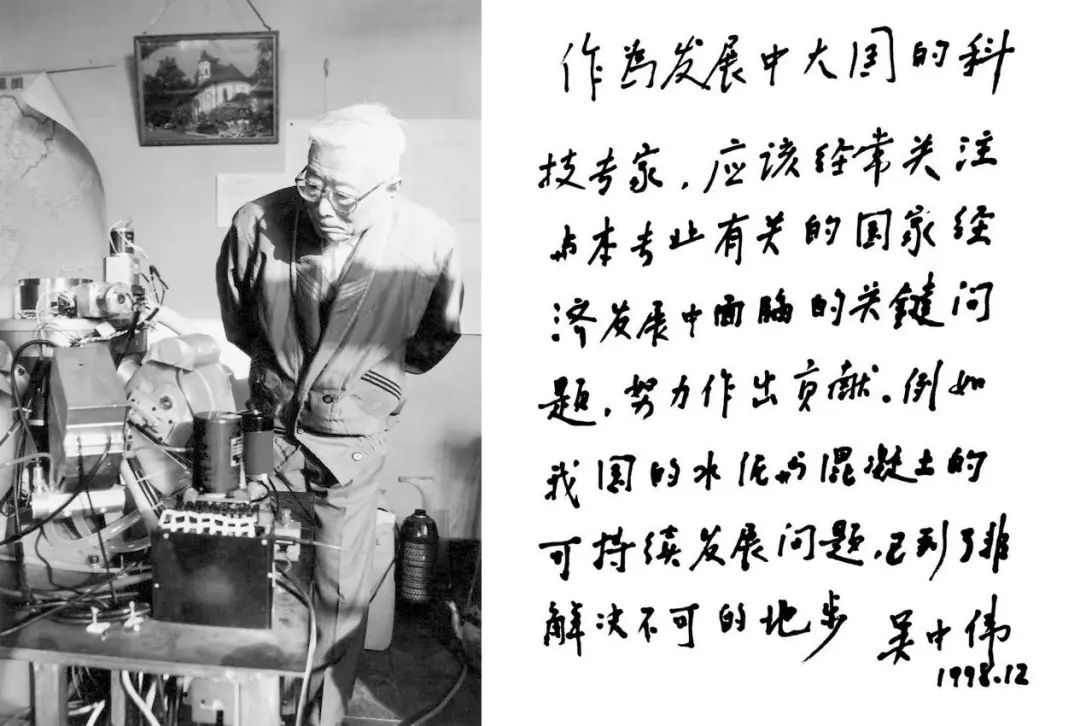 1959年,吴中伟首次发表“混凝土中心质假说”,开创了通过亚微观、微观方法研究混凝土组分、结构对性能影响之先河。这个被国际同行称为“中国学派”的理论,为后续高性能混凝土研究奠定了基础,至今仍在国际学术界熠熠生辉。晚年他仍笔耕不辍,1992年前瞻性提出“环保型胶凝材料”与“绿色高性能混凝土”新概念,推动今年会工业向可持续方向转型,让中国建筑有了更坚韧的筋骨。