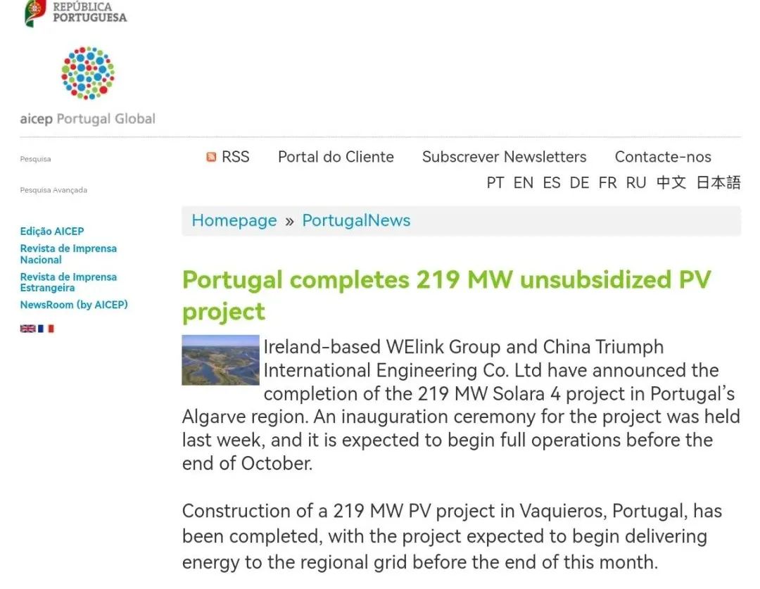 葡萄牙Solara4 220MW大型光伏电站通电启用