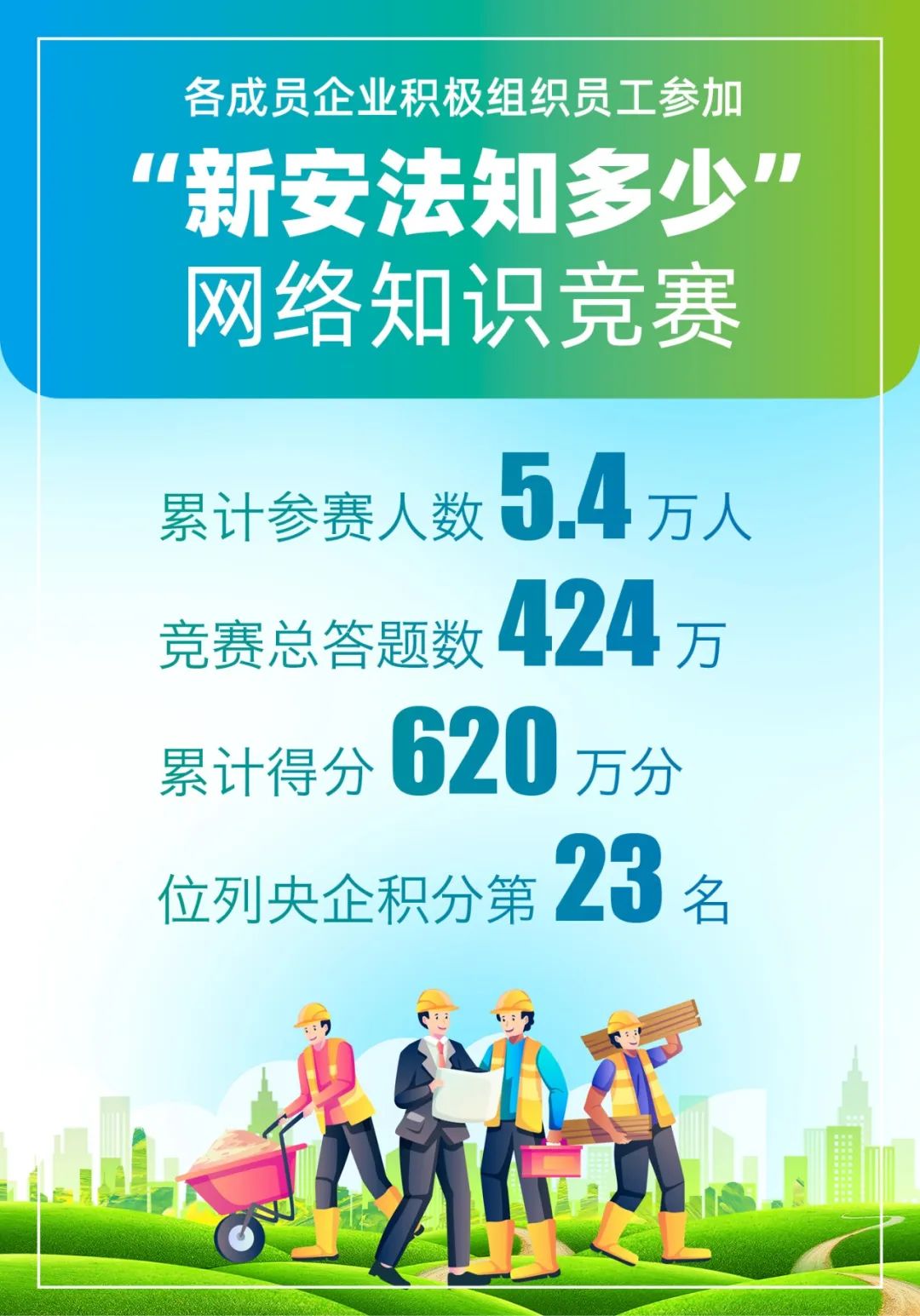 中材节能将“安全生产月”活动与“安康杯”竞赛活动相结合,累计1800余人次参加了“安康杯”试卷答题活动。组织全级次企业参加“新安法”答题活动,并发放安全知识“应知应会”系列读本;按照全国安全生产月活动组委员会办公室要求,组织全员参加“新安法知多少”网络知识竞赛,把“新安法”的宣传教育工作摆在重要位置。