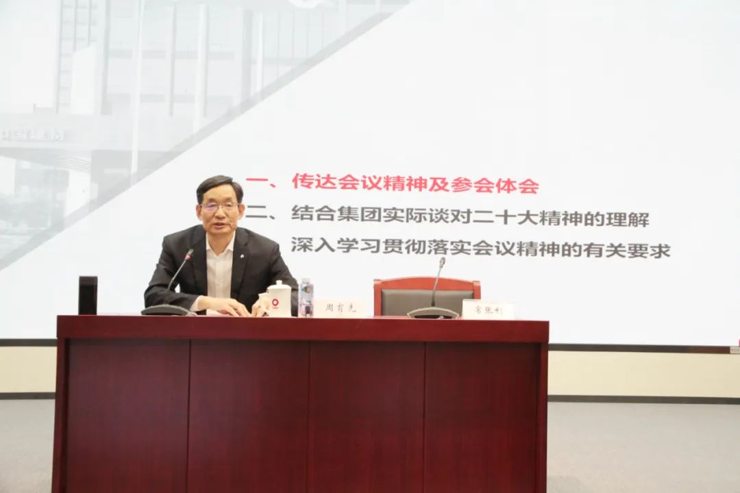 会议强调,深入学习宣传贯彻党的二十大精神,是全党全国当前和今后一个时期的首要政治任务,要全面贯彻习近平新时代中国特色社会主义思想,深刻领悟“两个确立”的决定性意义,坚定做到“两个维护”,迅速在全集团兴起学习宣传贯彻党的二十大精神热潮,切实把大会精神和党中央决策部署贯彻落实到集团改革发展全过程,为实现党的二十大确定的目标任务作出应有的贡献。